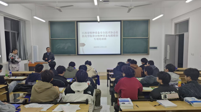 制造业,是立国之本、强国之基。我国正由制造大国加快向制造强国迈进,技能人才是制造强国战略的核心支撑力量。匠才聚则百业兴,技能强则国运昌,“十四五”以来,习近平总书记多次就加强技能人才队伍建设发表重要论述,为技能人才发展指明前进方向。江西省特种设备安全技术协会一直注重加强与省内职业院校的紧密联系,就共同培养特种设备行业所需的技能人才开展磋商与合作。江西机电职业技术学院23届电梯工程技术专业学生当前处于专科培养计划中“实践教学环节前置”阶段,为强化学生专业技能与行业岗位的适配性,提升他们的实践操作和动手解决问题能力。2025年11月,省特协携行业有关专家为他们组织了一场干货满满的电梯专业技术知识专项培训。