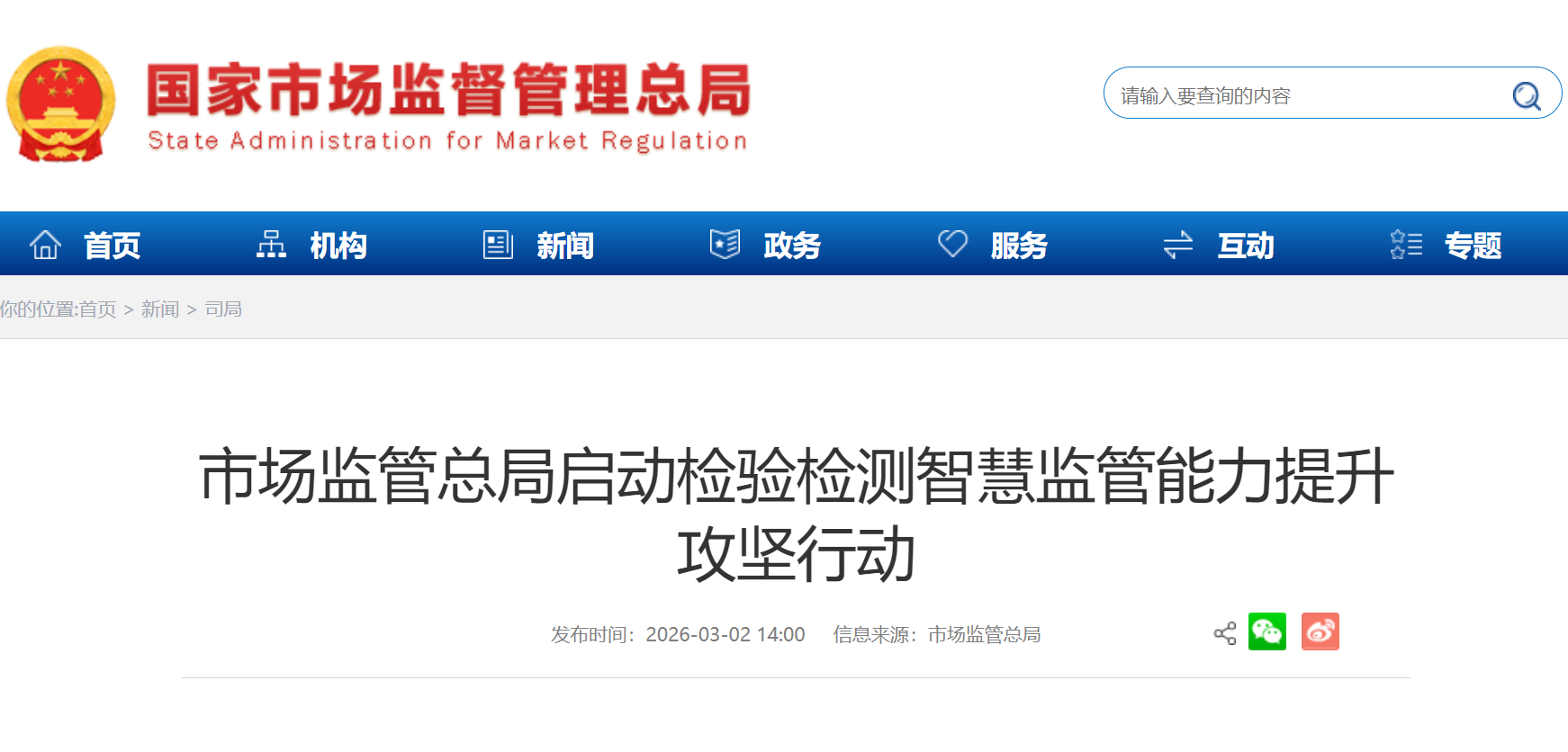 近日,市场监管总局印发《检验检测智慧监管能力提升攻坚行动方案》,明确到2027年底基本建成全国统一的检验检测智慧监管平台,全面推动检验检测监管业务与数智化技术深度融合。