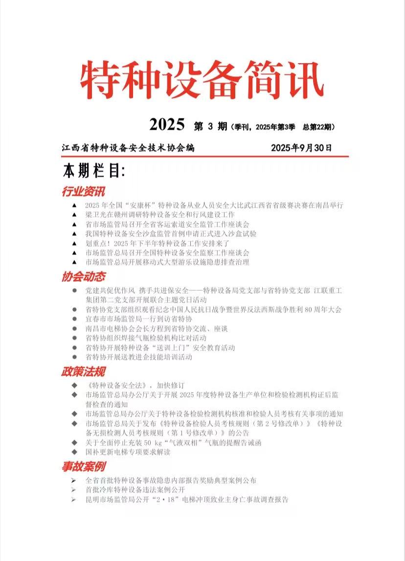2025年第03期特种设备简讯已制作完成,请点击浏览: