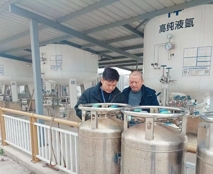 针对岁末年初人员返乡、用气量加大的特点,对液化石油气瓶充装站进行安全检查。