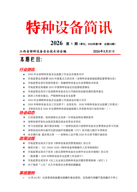2026年第01期特种设备简讯已制作完成,请点击浏览: